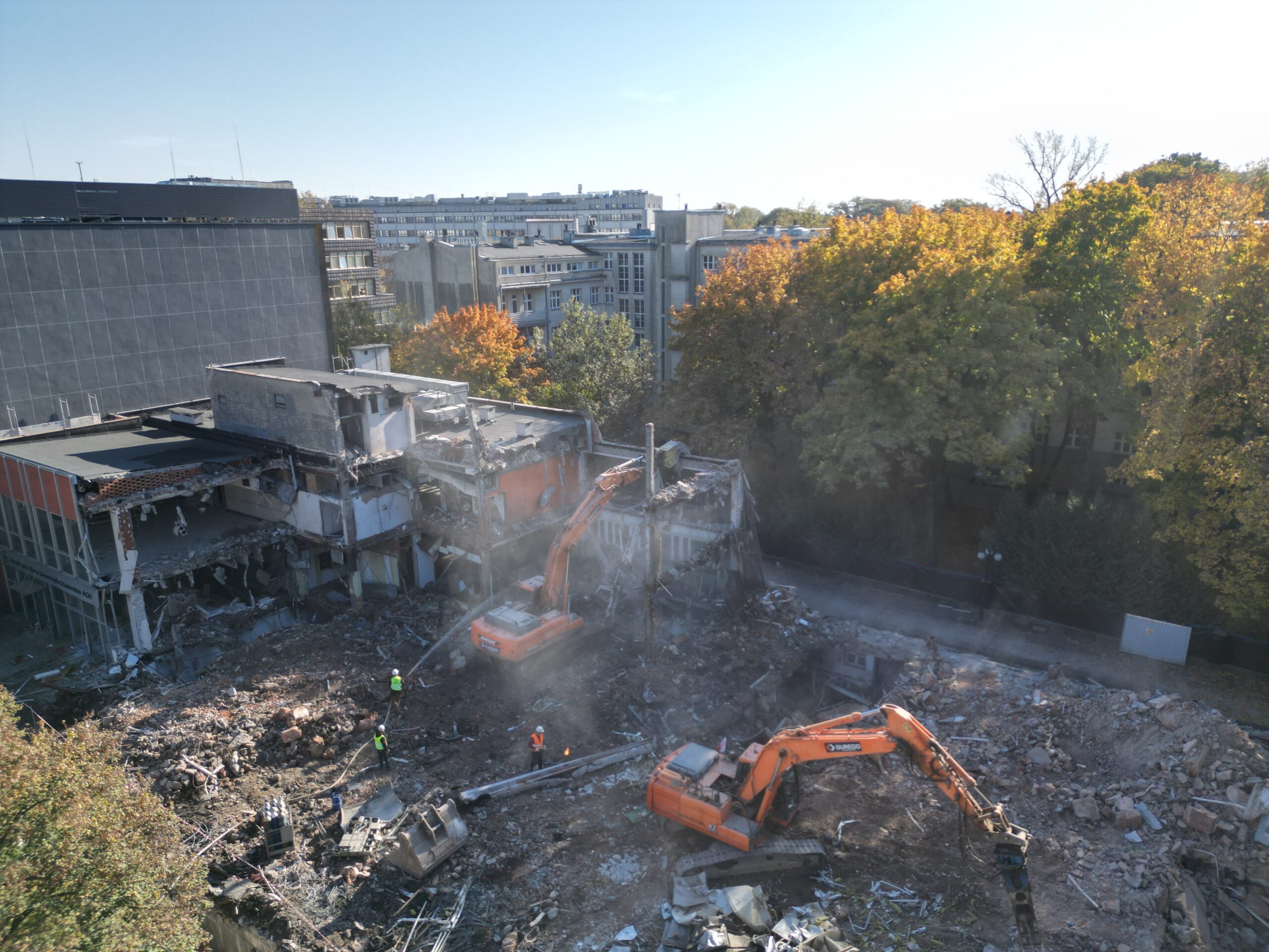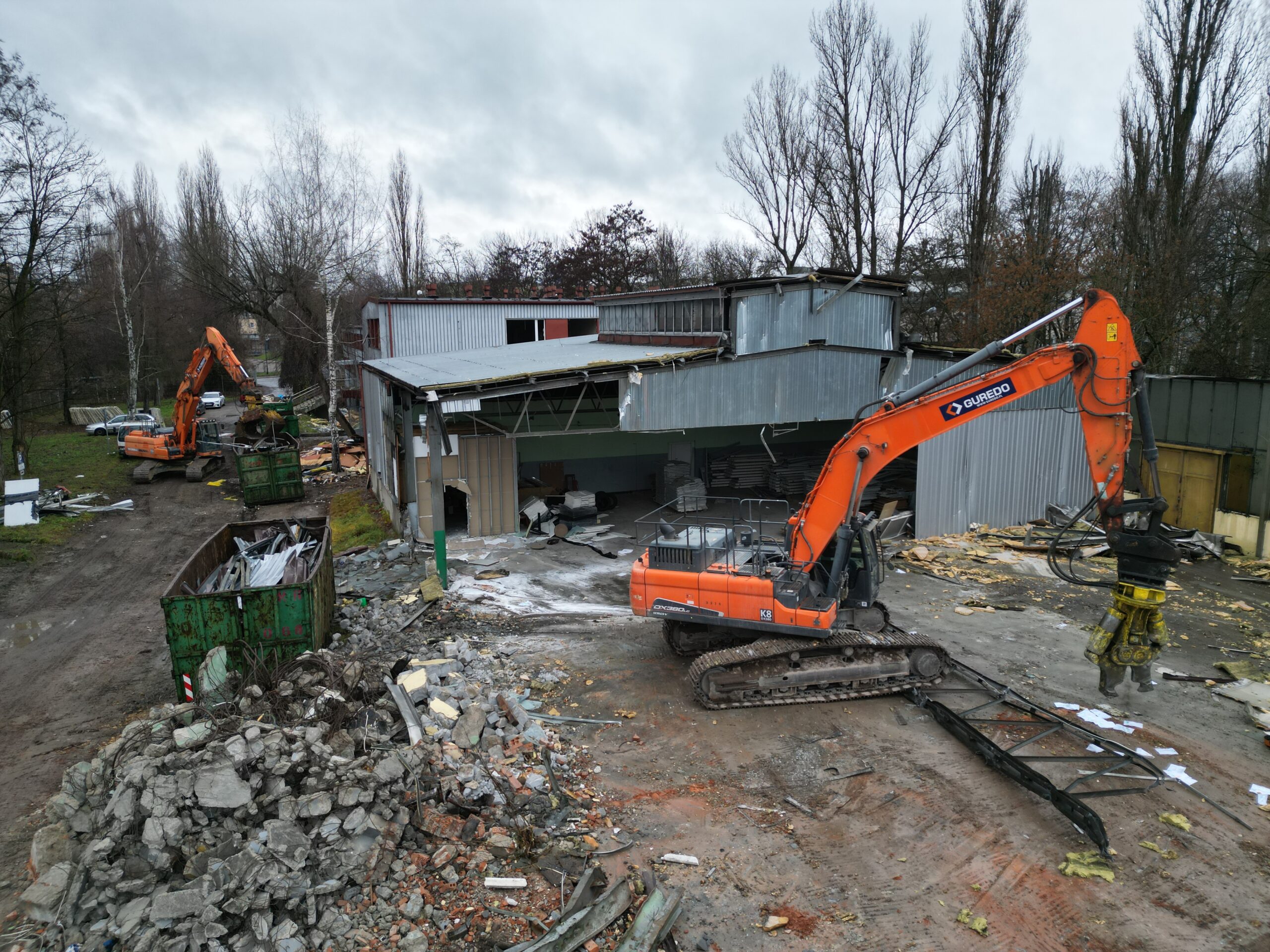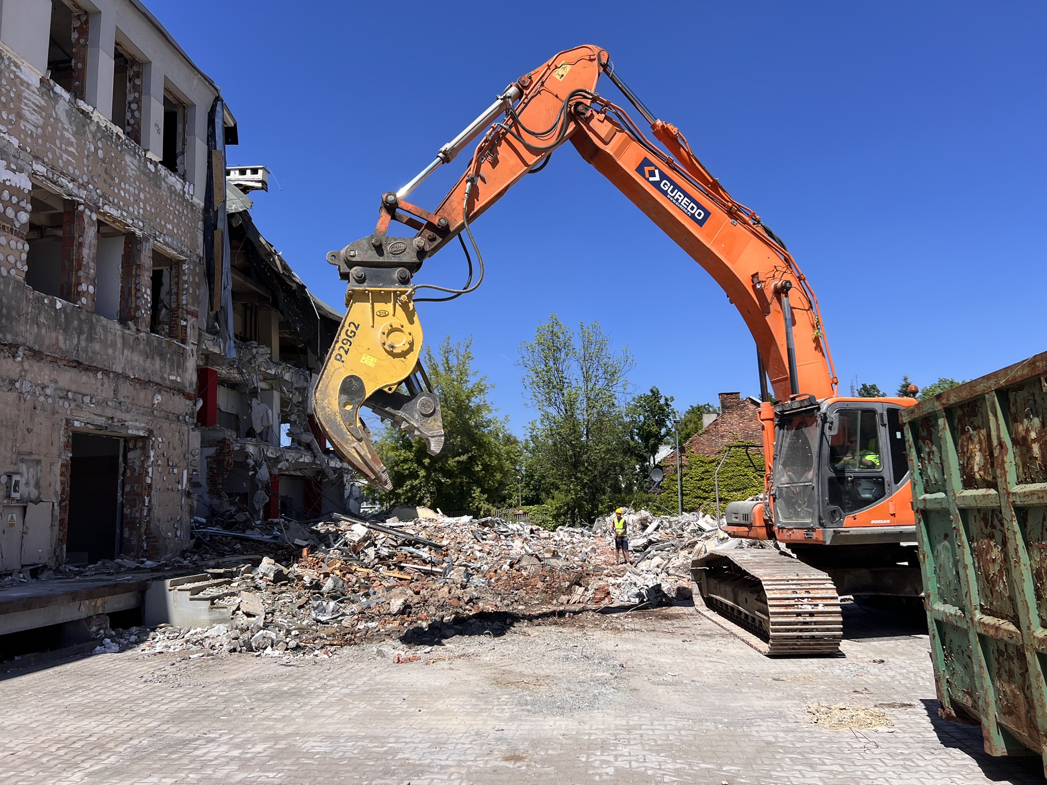 - Dysponujemy nowoczesnym sprzętem: koparki z osprzętem wyburzeniowym, młoty hydrauliczne, nożyce do cięcia stali